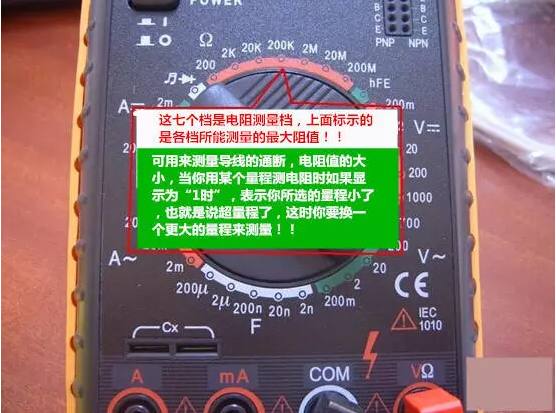 2、 選擇電阻檔(?)。