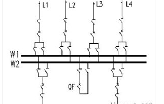 雙母線接線見圖5。具有兩組母線W1、W2。每回線路都經(jīng)一臺斷路器和兩組隔離開關分別與兩組母線連接,母線之間通過母線聯(lián)絡斷路器QF(簡稱母聯(lián))連接,每一個電源回路也是通過一臺斷路器和兩組母線隔離開關接在兩組母線上。