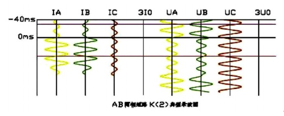 兩相短路故障錄波圖特點(diǎn):