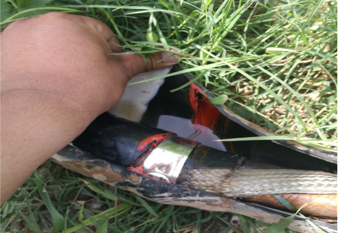 周期放電去聲磁定位,剛開始還能聽到聲音,在精確定位時(shí)發(fā)現(xiàn)聽不到聲音了,判斷為故障點(diǎn)燒穿,成為低阻故障,所以聲音減小,現(xiàn)場(chǎng)人員告知此處有一接頭,停止放電挖出接頭后發(fā)現(xiàn)接頭外觀完好,反復(fù)搖晃電纜接頭,繼續(xù)打壓,在接頭處聽到微弱放電聲,打開接頭后發(fā)現(xiàn)接頭進(jìn)水。