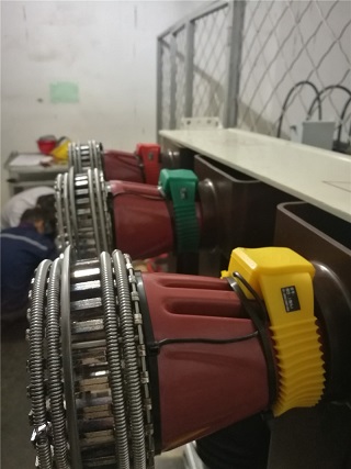 9月17日下午到達(dá)**能源公司,這個(gè)測(cè)溫系統(tǒng)需要安裝的有180個(gè)測(cè)溫點(diǎn),2臺(tái)RM-C3000G接收主機(jī)和 1臺(tái)RM-C3000E接收主機(jī)。本次工程訂貨安裝非常緊急,客戶要求所有測(cè)溫點(diǎn)必須在19日0時(shí)前安裝完成。其中有5個(gè)柜子特別緊急必須在17日21時(shí)點(diǎn)之前必須完成。根據(jù)客戶要求進(jìn)行柜號(hào)排列,并做記錄,然后按順序找出10KV配電室這5個(gè)開關(guān)柜對(duì)應(yīng)的測(cè)溫點(diǎn)序號(hào)進(jìn)行安裝。小車推出后發(fā)現(xiàn)觸頭為倒錐形,合金片收緊困難,溫度探頭難以安裝,施工人員克服種種困難,保質(zhì)保量并提前2小時(shí)完成,主機(jī)全部接收到已安裝探頭的溫度數(shù)據(jù)。